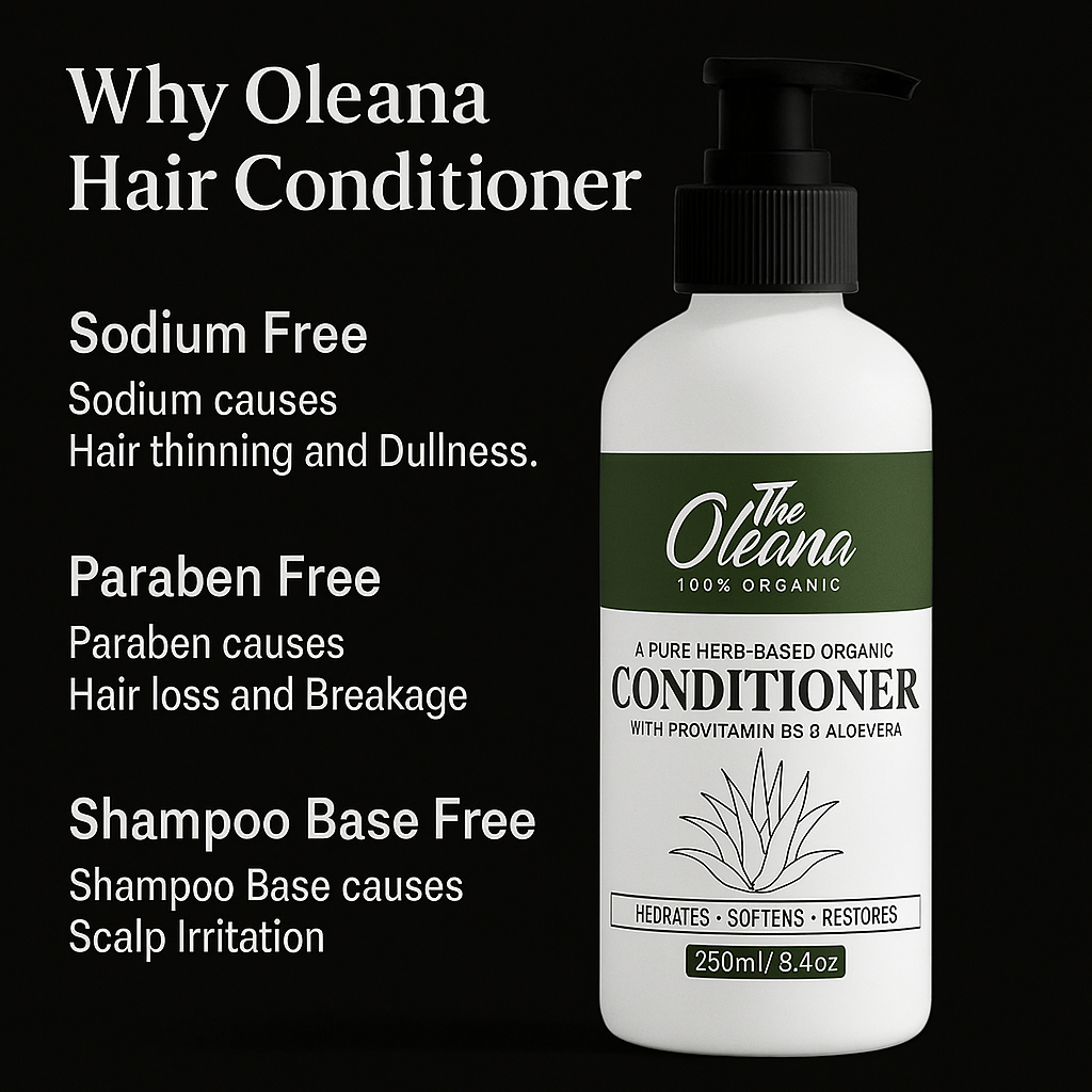Unlike chemical-based conditioners that cause hair thinning, Oleana is 100% organic and Ayurvedic.A customer favorite and our bestseller — loved for its deep nourishment and natural shine.
