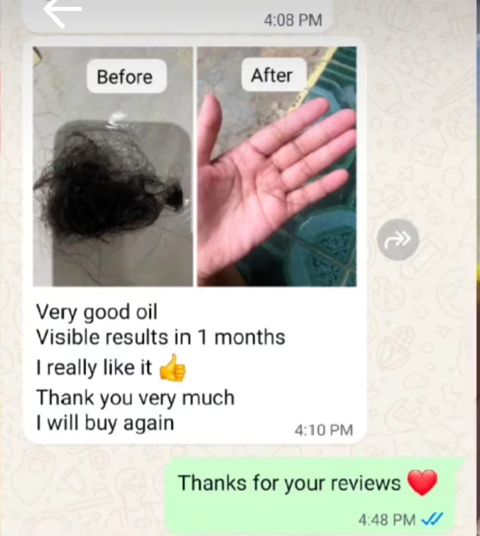 One of our happy customers who saw visible hair growth and reduced hair fall in just 1 month with Oleana Hair Oil! 🌿💚